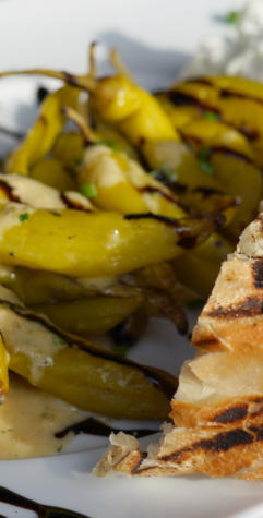 1.Caprese(a,d)7,50 €Tomaten, Mozzarella, Pesto und Brot2.Zaziki (a,d)4,90 €Gurken, Joghurt mit Knoblauch, Olivenöl mit Brot3.Fladenbrot (a,b,d)5,90 €Hausgemachtes Pitabrot mit Schafskäse und Knoblauch5.Gegrillte Peperoni6,50 €Mit Zaziki, Knoblauchsoße